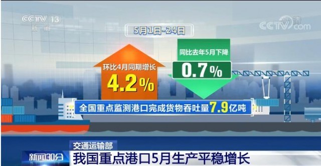 全國(guó)港口航道保持暢通 重點(diǎn)港口5月生產(chǎn)平穩(wěn)增長(zhǎng)