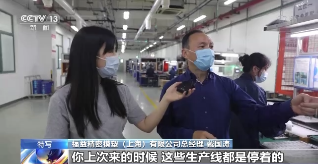 福益精密模塑(上海)有限公司總經(jīng)理 戴國濤:我們得到了政府部門的大力支持,從目前來看,我們的生產(chǎn)恢復還是非??臁N覀?月1日早上人進來,然后到晚班的時候我們已經(jīng)100%恢復了。