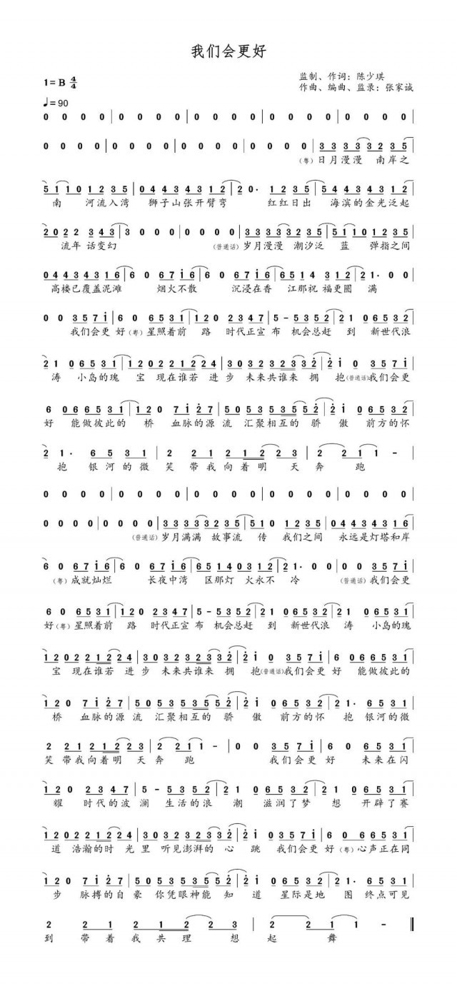中央廣播電視總臺(tái)策劃制作的慶祝香港回歸祖國25周年主題歌曲《我們會(huì)更好》普通話粵語融合版本、粵語版本近日重磅發(fā)布上線。目前話題閱讀1.3億,播放超1300萬。香港著名音樂人陳少琪任制作人及作詞,張家誠作曲,香港歌手容祖兒、陳偉霆和內(nèi)地歌手譚維維、孫楠聯(lián)袂演唱。