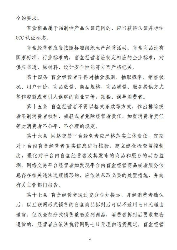 為引導(dǎo)盲盒經(jīng)營者誠信守法經(jīng)營,根據(jù)有關(guān)法律法規(guī),市場(chǎng)監(jiān)管總局起草了《盲盒經(jīng)營活動(dòng)規(guī)范指引(試行)(征求意見稿)》,現(xiàn)向社會(huì)公開征求意見。歡迎社會(huì)各界提出意見建議,意見反饋截止日期為2022年8月30日。公眾可通過以下途徑和方式提出意見: