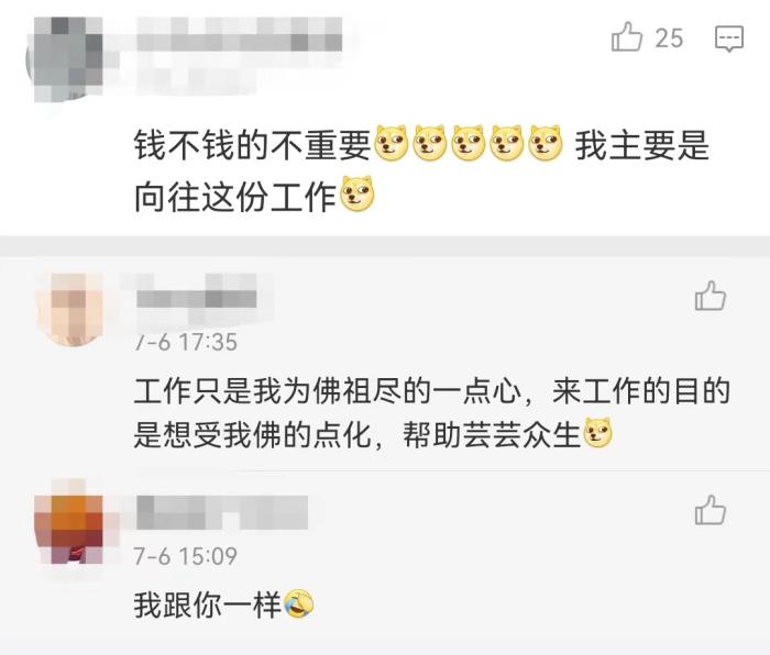 有不少網(wǎng)友在招聘啟事下留言:錢不錢的不重要,主要是向往這份工作;這不是我夢中情工嗎……