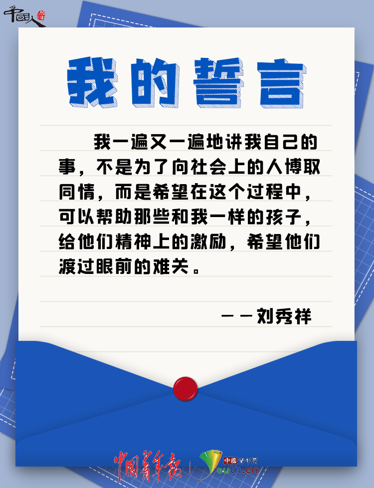 他說:“我一遍又一遍地講我自己的事,不是為了向社會上的人博取同情,而是希望在這個過程中,可以幫助那些和我一樣的孩子,給他們精神上的激勵,希望他們渡過眼前的難關(guān)?!?/p>