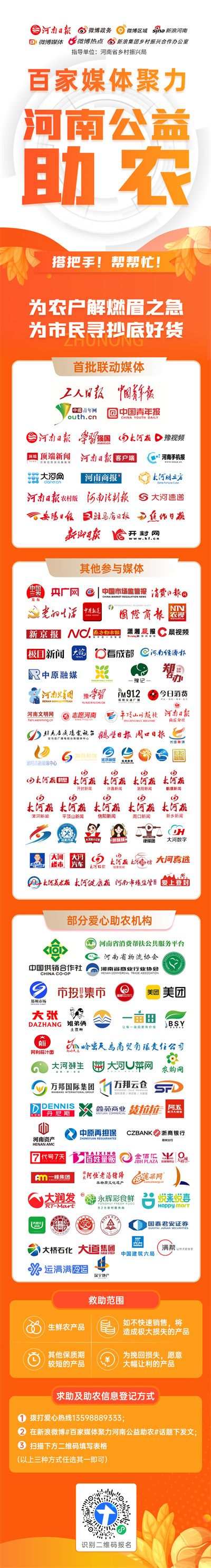 11月18日,由河南日報社聯(lián)合微博政務(wù)、微博區(qū)域、新浪河南、微博媒體、微博熱點、新浪集團鄉(xiāng)村振興合作辦公室發(fā)起,中國青年報、中國青年網(wǎng)等媒體聯(lián)動的“百家媒體聚力河南公益助農(nóng)”活動正式啟動。旨在百家媒體形成合力,搭建起信息共享的供銷互助平臺,最大程度動員全國采購力量,解決“非常時期”的河南農(nóng)產(chǎn)品滯銷難題。這些天來,百余家媒體發(fā)揮“最強信息中介”力量,幫助眾多農(nóng)戶對接銷售渠道,傾盡全力解決蔬菜賣難問題。