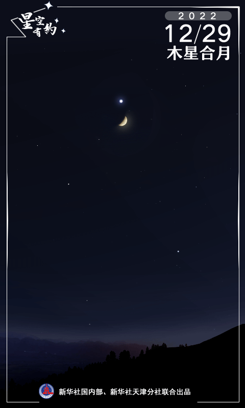 新華社天津12月27日電(記者周潤?。┨煳目破諏<医榻B,12月29日晚天宇將上演木星合月,這是2022年最后一場(chǎng)行星合月。屆時(shí)只要天氣晴好,我國公眾可在南方天空欣賞到明亮木星與一輪上弦月近距離競輝的唯美畫面。