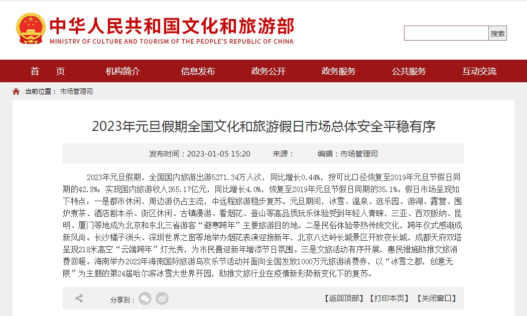 官方:元旦假期國內(nèi)出游5271.34萬人次 體現(xiàn)三大特點(diǎn)