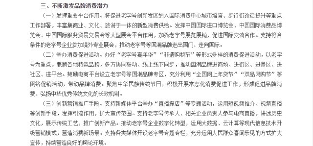 《通知》表示,不斷激發(fā)品牌消費潛力。發(fā)揮中國國際進口博覽會、中國國際消費品博覽會、中國國際服務貿(mào)易交易會等大型展會平臺作用,加強老字號展覽展銷,促進國際交流合作。支持符合條件的老字號企業(yè)參加境外專業(yè)展會,推動老字號等國潮品牌走出國門、走向國際。