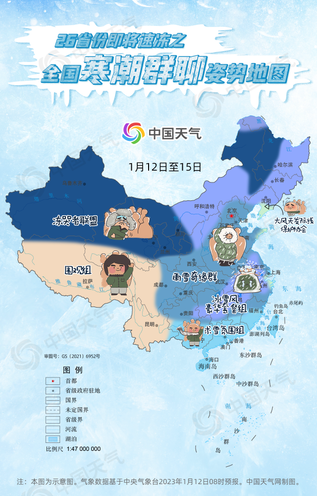 1月12日,2023年首場(chǎng)寒潮已抵達(dá)內(nèi)蒙古一帶,未來(lái)幾天將大舉南下橫掃我國(guó)大部,中央氣象臺(tái)已升級(jí)發(fā)布寒潮黃色預(yù)警,約26省區(qū)市即將加入寒潮群聊。哪里將加入“凍哭者聯(lián)盟”?哪里將獲得“冰雪風(fēng)超級(jí)豪華套餐”?哪里與雪無(wú)緣默默充當(dāng)“求雪氛圍組”?中國(guó)天氣網(wǎng)推出全國(guó)寒潮群聊姿勢(shì)地圖,請(qǐng)各位對(duì)號(hào)入座掃碼進(jìn)群!