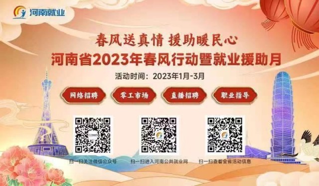 河南省通過“1+6省際勞務(wù)協(xié)作聯(lián)盟”平臺鋪路、省級專場活動高位引領(lǐng)、“四進”就業(yè)援助服務(wù)保障、線下線上同步直播送崗、零工市場全省聯(lián)動快招等形式,把就業(yè)春風(fēng)送到群眾身邊?;顒悠陂g,計劃組織1.6萬家企業(yè),舉辦2500場招聘活動,發(fā)布100萬崗位。