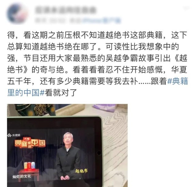 大學(xué)時(shí)讀的這部書,令總臺(tái)臺(tái)長記憶深刻。在提議策劃推出《典籍里的中國》第二季時(shí),臺(tái)長建議關(guān)注《越絕書》這個(gè)選題。古越人絕地求生、奮斗不息的精神,值得今人傳承弘揚(yáng)!