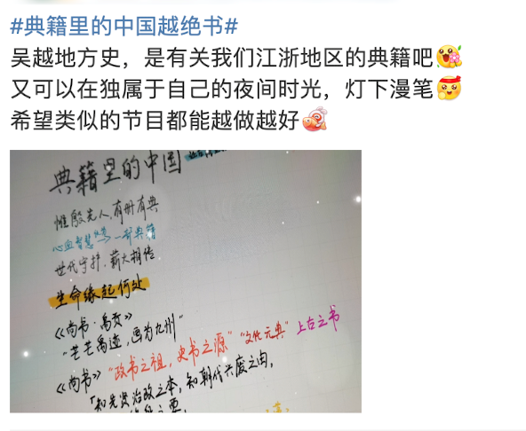 節(jié)目成功傳遞了杰出典籍蘊(yùn)含的精神內(nèi)核和文化靈魂,激發(fā)了觀眾內(nèi)心對中華民族優(yōu)秀傳統(tǒng)文化的認(rèn)同。