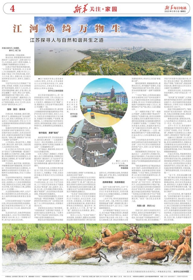 3月3日,新華每日電訊 新華關(guān)注·家園刊載題為《江河煥綺萬物生 江蘇探尋人與自然和諧共生之道》的報(bào)道。