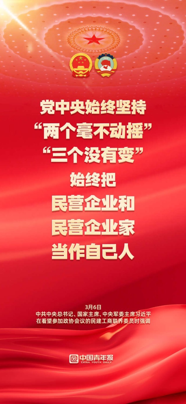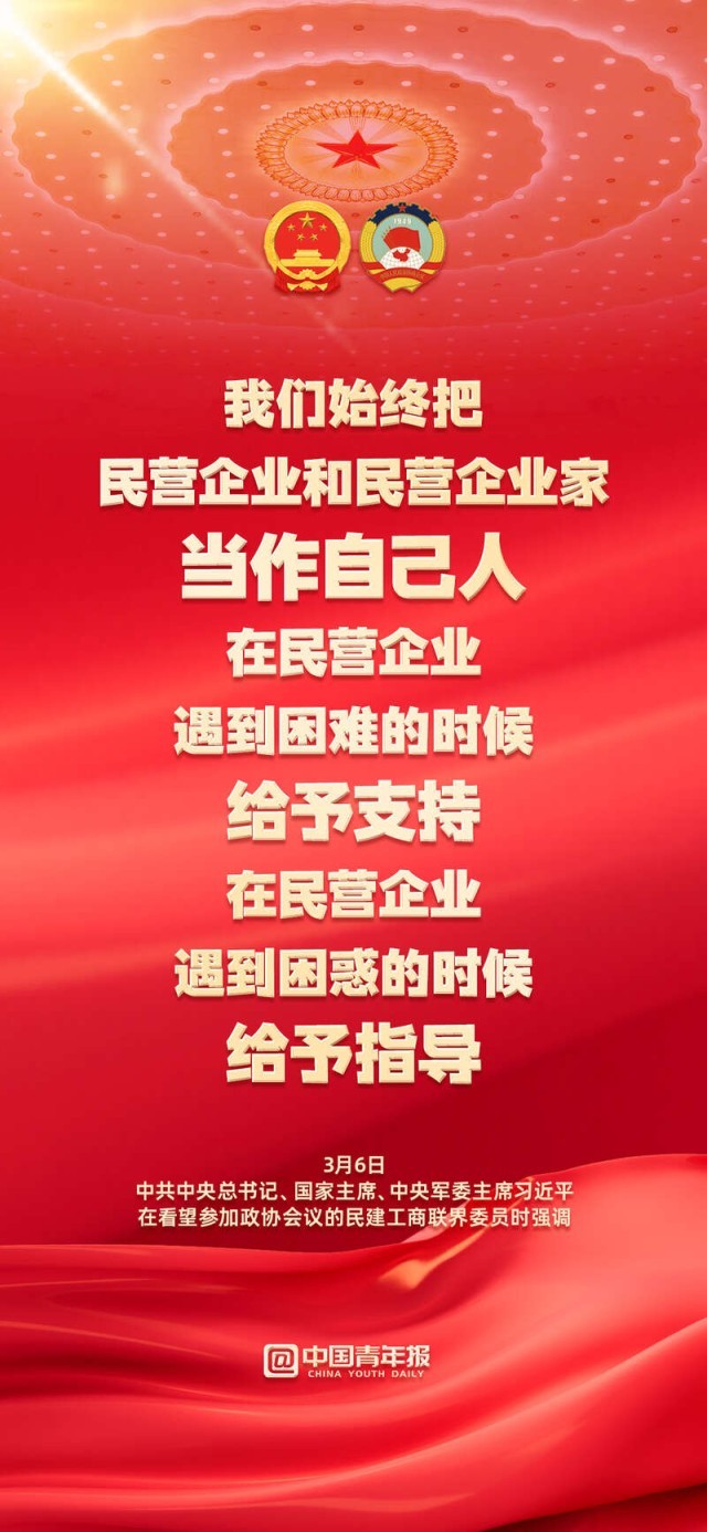 “始終把民營企業(yè)和民營企業(yè)家當作自己人”;“無論是國有企業(yè)還是民營企業(yè),都是促進共同富裕的重要力量,都必須擔負促進共同富裕的社會責任?!?月6日下午,習近平總書記在看望參加政協(xié)會議的民建工商聯(lián)界委員時強調(diào),要正確引導民營經(jīng)濟健康發(fā)展高質(zhì)量發(fā)展。關(guān)于民營企業(yè)和民營企業(yè)家,總書記作出哪些重要論述,轉(zhuǎn)存金句,共同學習