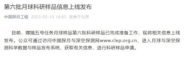 央視網(wǎng)消息:據(jù)“中國探月工程”微信公眾號消息,目前,嫦娥五號任務(wù)月球樣品第六批科研樣品已完成準(zhǔn)備工作,現(xiàn)將相關(guān)信息上線發(fā)布。公眾可通過訪問中國探月與深空探測網(wǎng)www.clep.org.cn,進(jìn)入月球與深空探測科學(xué)數(shù)據(jù)與樣品發(fā)布系統(tǒng),獲取有關(guān)信息,進(jìn)行科研樣品申請。