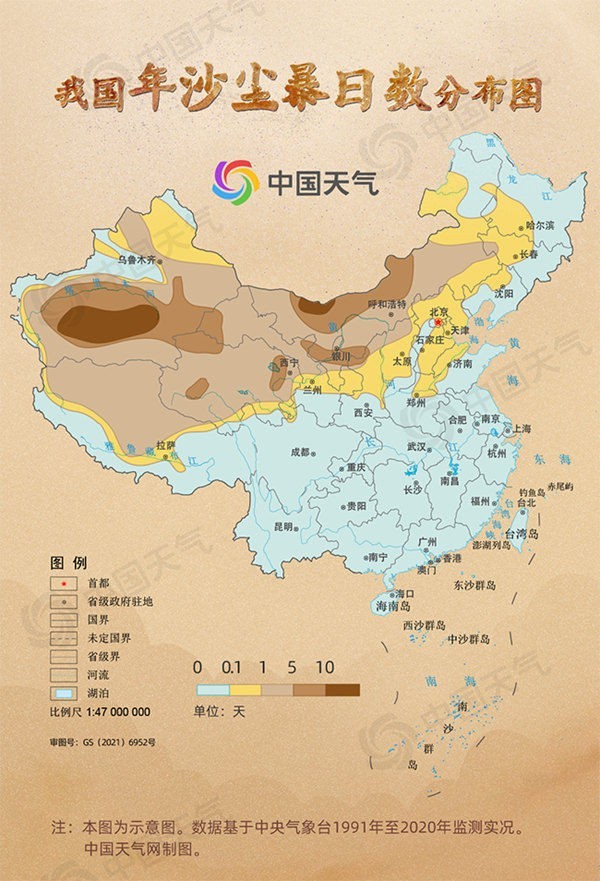 記者統(tǒng)計(jì)1991年至2020年來,我國沙塵暴日數(shù)的分布情況,可以看出沙塵天氣主要影響我國北方地區(qū),其中,南疆盆地和內(nèi)蒙古西部兩地是沙塵暴的高發(fā)區(qū),年沙塵暴日數(shù)在10天以上,部分地區(qū)超過20天。