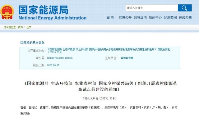央視網(wǎng)消息:近日,國家能源局、生態(tài)環(huán)境部、農(nóng)業(yè)農(nóng)村部、國家鄉(xiāng)村振興局發(fā)布《關(guān)于組織開展農(nóng)村能源革命試點縣建設(shè)的通知》。具體如下: