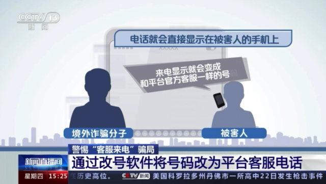 第三步,當被害人接到電話時,手機上顯示的就是和國內(nèi)一些知名平臺、手機APP客服電話一模一樣的電話號碼。有的被害人因為手機安裝了號碼識別軟件,接到這樣的詐騙電話,甚至會被自動識別匹配出平臺名稱,顯示在被害人的手機上,繼而一步步陷入“冒充客服”詐騙的陷阱。