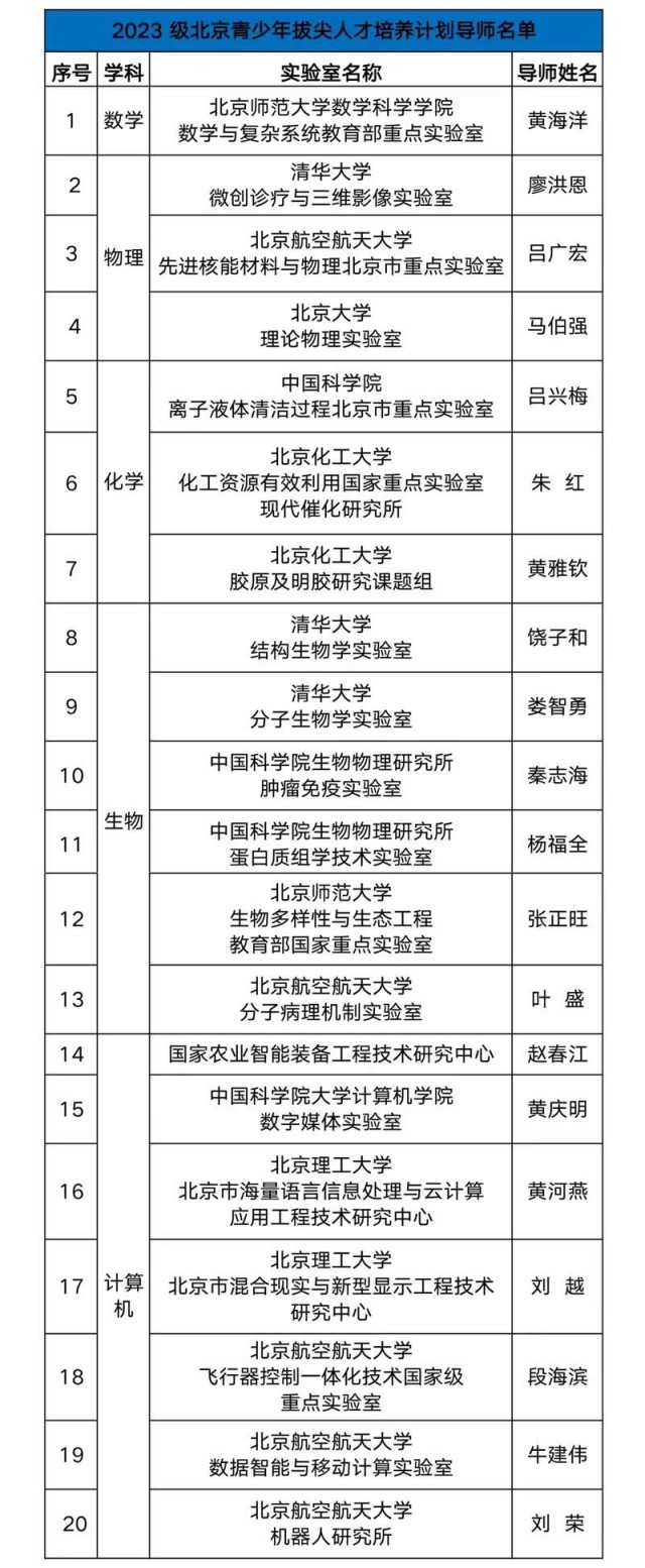 今年2月,北京科學(xué)中心發(fā)布了《關(guān)于開展2023級北京青少年拔尖人才培養(yǎng)計劃招生的通知》,凡是對數(shù)學(xué)、物理、化學(xué)、生物、計算機其中一門具有濃厚興趣的北京市全日制公立中學(xué)初二至高一年級學(xué)生均可報名申請。