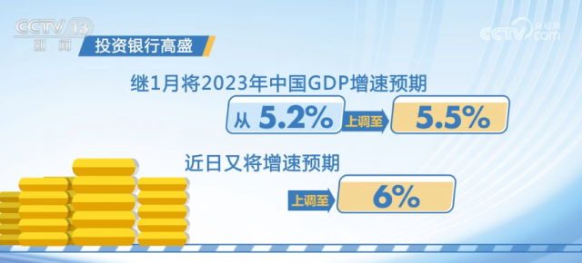 央視網(wǎng)消息:今年以來,國際機構(gòu)紛紛上調(diào)中國經(jīng)濟增長預(yù)期。投資銀行高盛繼1月將2023年中國GDP增速預(yù)期從5.2%上調(diào)至5.5%后,近日又將增速預(yù)期上調(diào)至6%。據(jù)國際貨幣基金組織測算,中國經(jīng)濟的強勁反彈意味著將在今年貢獻全球經(jīng)濟增長的約三分之一,將為世界經(jīng)濟帶來強勁的拉動作用。