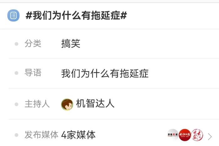 不過,年輕人使用這個梗時的狀態(tài),往往是“半真半假”:一方面為自己的“拖延”感到焦慮、自責,所以選擇勇敢地說出來,并且試圖在同道中人的回應里尋找共鳴;另一方面,“拖延癥”并不是一個真的讓人感到萬分愧疚的詞匯,人們在玩梗時甚至可能帶上些許調侃色彩,在一定程度上減輕心理負擔,何樂而不為?