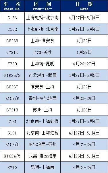 長(zhǎng)三角鐵路五一假期增開(kāi)多趟列車 詳細(xì)車次公布