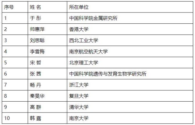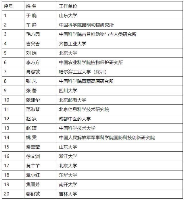 第十八屆中國青年女科學(xué)家獎揭曉 20人5支團(tuán)隊獲獎
