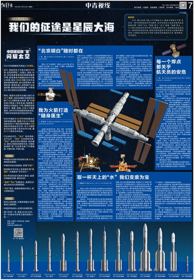 今天,我們迎來了第八個中國航天日。隨著中國航天不斷“走出去”,昔日的神秘面紗早已揭開,近年來更是以自信開放的姿態(tài)頻頻出圈:“神舟”飛天,“嫦娥”奔月,“北斗”指路,“祝融”探火,一個個國之重器成為當代青少年最愛追的“星”。本版邀約奮戰(zhàn)在航天一線的優(yōu)秀青年代表,請他們講述逐夢太空征途上創(chuàng)造的精彩故事,以期吸引更多青少年加入探索宇宙奧秘的大軍,格物致知、叩問蒼穹。
