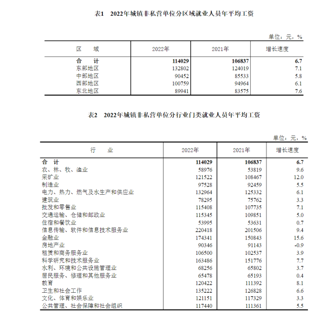 2022年全國(guó)城鎮(zhèn)非私營(yíng)單位就業(yè)人員年平均工資為114029元,比上年增加7192元,名義增長(zhǎng)[1]6.7%。扣除價(jià)格因素,2022年全國(guó)城鎮(zhèn)非私營(yíng)單位就業(yè)人員年平均工資實(shí)際增長(zhǎng)4.6%。