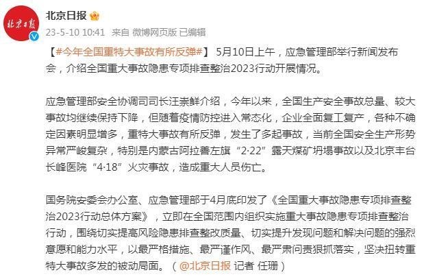 應急管理部:今年全國重特大事故有所反彈