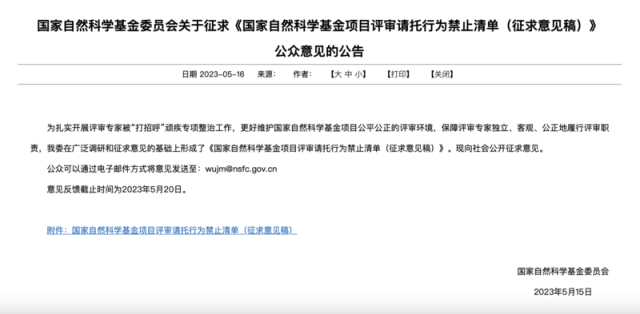 國家自然科學基金項目評審請托行為禁止清單公開征求意見