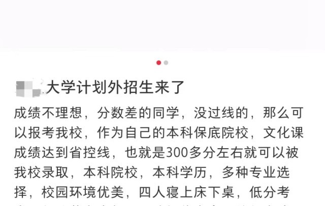 圖為在某社交媒體上搜索到的一條“計(jì)劃外招生”信息。(互聯(lián)網(wǎng)截圖)