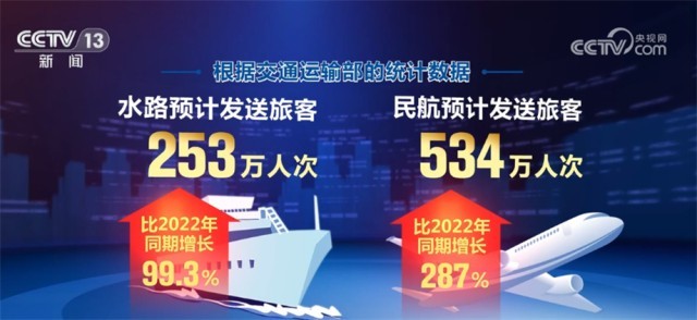 端午假期,全國(guó)鐵路、公路、水路、民航預(yù)計(jì)共發(fā)送旅客14047萬(wàn)人次,比2022年同期增長(zhǎng)89.1%。其中,鐵路預(yù)計(jì)發(fā)送旅客4326萬(wàn)人次,比2022年同期增長(zhǎng)150.2%;公路預(yù)計(jì)發(fā)送旅客8934萬(wàn)人次,比2022年同期增長(zhǎng)64.4%;水路預(yù)計(jì)發(fā)送旅客253萬(wàn)人次,比2022年同期增長(zhǎng)99.3%;民航預(yù)計(jì)發(fā)送旅客534萬(wàn)人次,比2022年同期增長(zhǎng)287%。