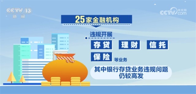 25家金融機構違規(guī)開展存貸、理財、信托、保險等業(yè)務,其中銀行存貸業(yè)務違規(guī)問題仍較高發(fā)。
