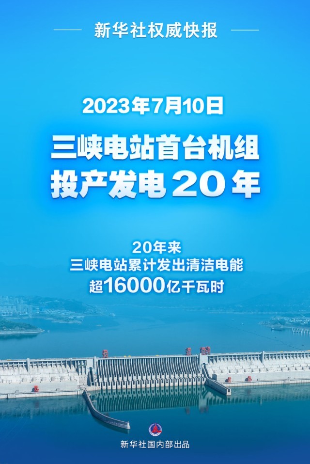 三峽電站是世界裝機容量最大的水電站,2023年7月10日,三峽電站首臺機組投產(chǎn)發(fā)電整20年。