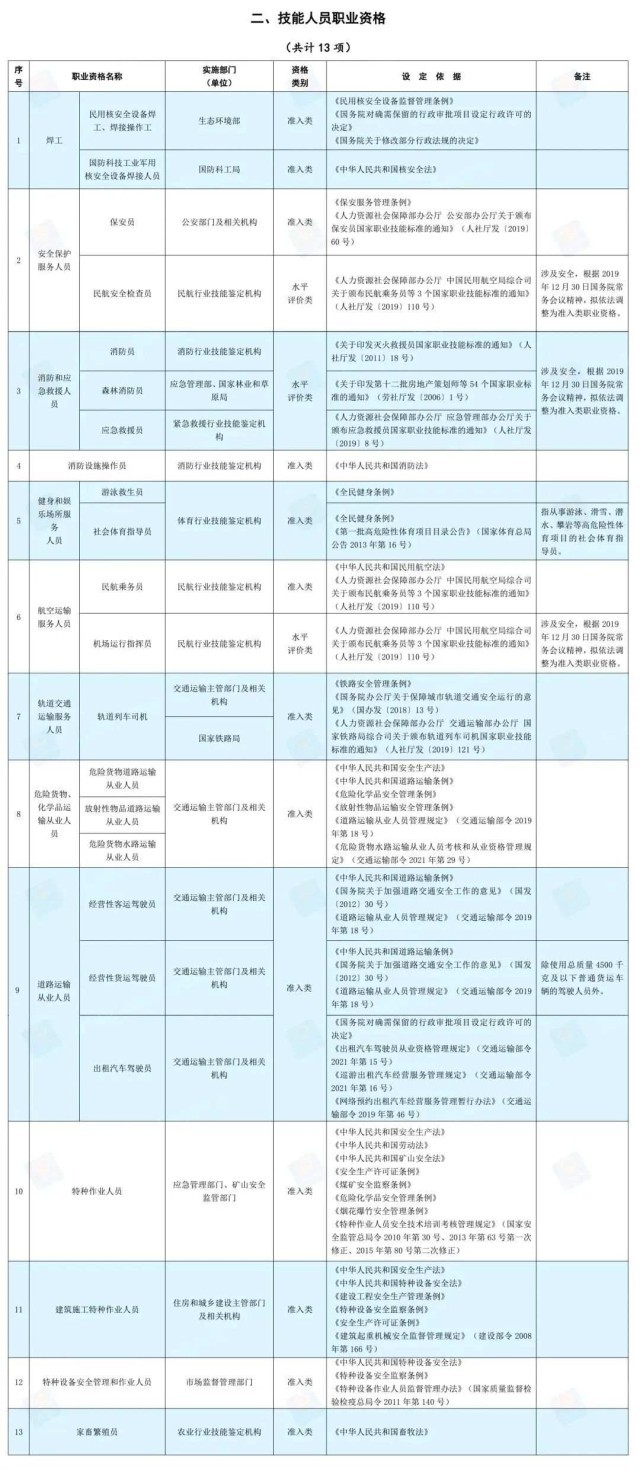人社部公布的《國家職業(yè)資格目錄》中