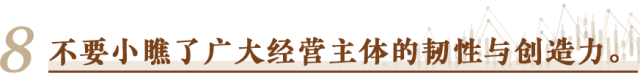 書寫這份“中國經(jīng)濟半年報”的,不光是宏觀政策的制定者,還有億萬經(jīng)營主體。它們在市場經(jīng)濟風風雨雨中摸爬滾打過來,承載著就業(yè),創(chuàng)造著財富,推動著創(chuàng)新,體現(xiàn)著社會責任。無論是服務(wù)業(yè)還是制造業(yè),無論是傳統(tǒng)產(chǎn)業(yè)還是戰(zhàn)略性新興產(chǎn)業(yè),哪一行哪一業(yè),缺得了充滿活力的經(jīng)營主體?看宏觀政策是否有效,標準之一就是看能否持續(xù)廣泛激發(fā)經(jīng)營主體的活力。一句話,任何時候都不要小瞧了廣大經(jīng)營主體的韌性與創(chuàng)造力,尊重他們,幫助他們,相信他們。