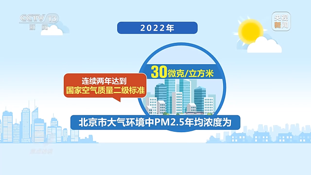黨的十八大以來,北京市堅決打好污染防治攻堅戰(zhàn),大力壓減燃煤、治理機動車排放、揮發(fā)性有機物以及各類揚塵污染,實施“一微克”行動,治理成效顯著,藍天越來越多。監(jiān)測結(jié)果顯示,2022年,北京市大氣環(huán)境中PM2.5年均濃度為每立方米30微克,比2013年下降了66.5%,連續(xù)兩年達到國家空氣質(zhì)量二級標準。重污染天數(shù)由2013年的58天減少到2022年的3天,“北京藍”成為常態(tài)。