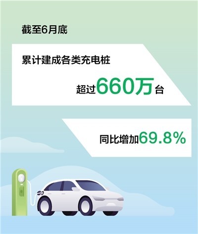 農(nóng)村地區(qū)適度超前建設(shè)充電基礎(chǔ)設(shè)施,只是我國充電樁建設(shè)的一個(gè)縮影。目前,我國已建成世界上數(shù)量最多、輻射面積最大、服務(wù)車輛最全的充電基礎(chǔ)設(shè)施體系。中國電動(dòng)汽車充電基礎(chǔ)設(shè)施促進(jìn)聯(lián)盟發(fā)布的最新數(shù)據(jù)顯示,截至6月底,全國累計(jì)建成各類充電樁超過660萬臺,同比增加69.8%。