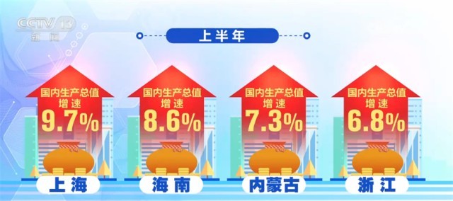 從上半年各省份的國內(nèi)生產(chǎn)總值增速看,江蘇、浙江等15個省份增速超過全國5.5%的增速,其中,上海、海南、內(nèi)蒙古和浙江等省份增速均在6.8%以上,廣東、江蘇、山東等21個省份的國內(nèi)生產(chǎn)總值增速超過了各自一季度的增速,經(jīng)濟(jì)增長恢復(fù)勢頭明顯。