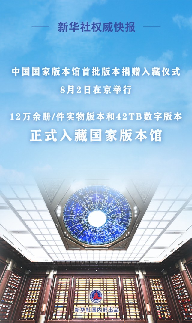 中國國家版本館首批版本捐贈入藏儀式8月2日在京舉行