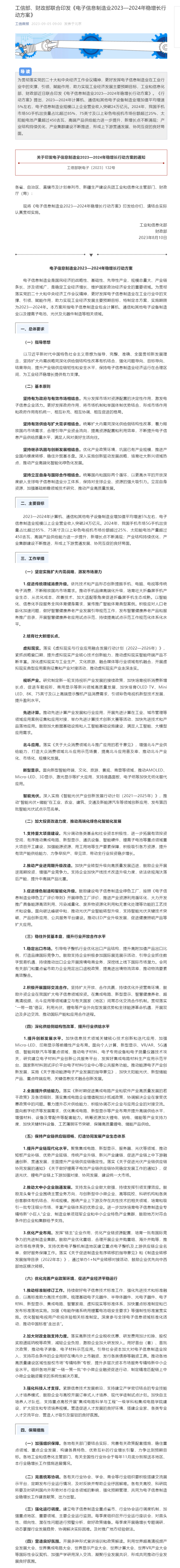 工信部、財政部聯(lián)合印發(fā)《電子信息制造業(yè)2023—2024年穩(wěn)增長行動方案》