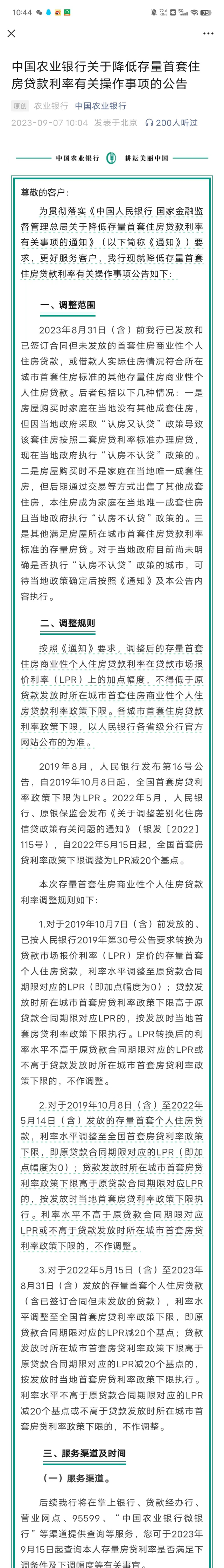 9月7日,中國(guó)農(nóng)業(yè)銀行、中國(guó)工商銀行相繼發(fā)布《中國(guó)農(nóng)業(yè)銀行關(guān)于降低存量首套住房貸款利率有關(guān)操作事項(xiàng)的公告》和《中國(guó)工商銀行關(guān)于存量首套個(gè)人住房貸款利率調(diào)整的公告》,公告內(nèi)容如下: