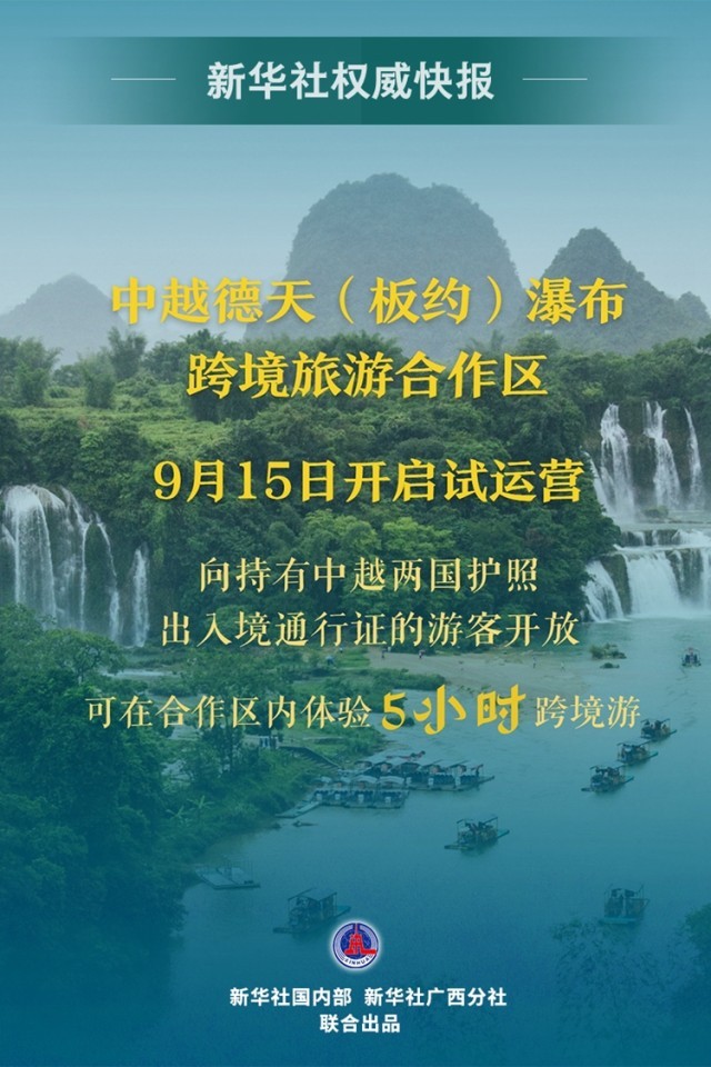 位于中國和越南交界地帶的德天(板約)跨國瀑布是亞洲第一、世界第四大跨國瀑布,中越德天(板約)瀑布跨境旅游合作區(qū)9月15日開啟試運行。