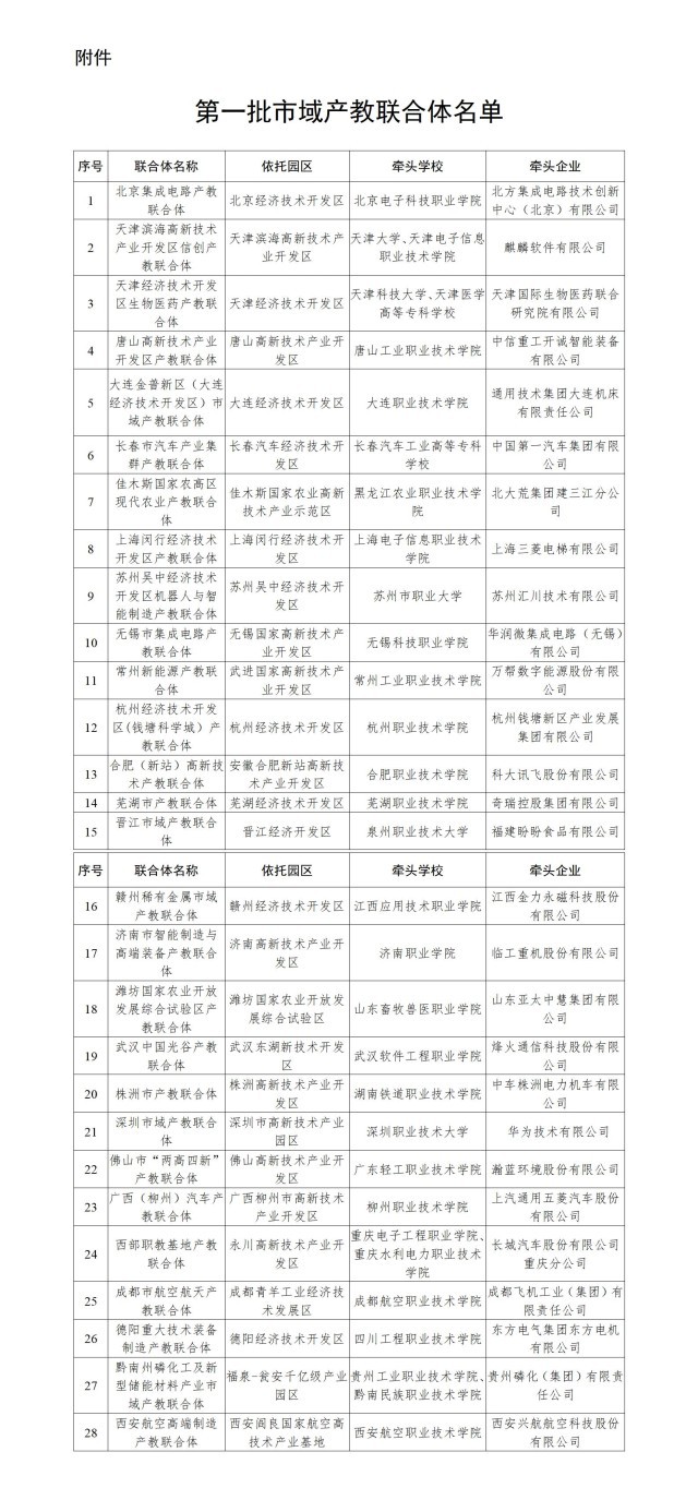 教育部公布第一批市域產(chǎn)教聯(lián)合體名單