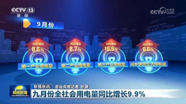 九月份全社會(huì)用電量同比增長(zhǎng)9.9%