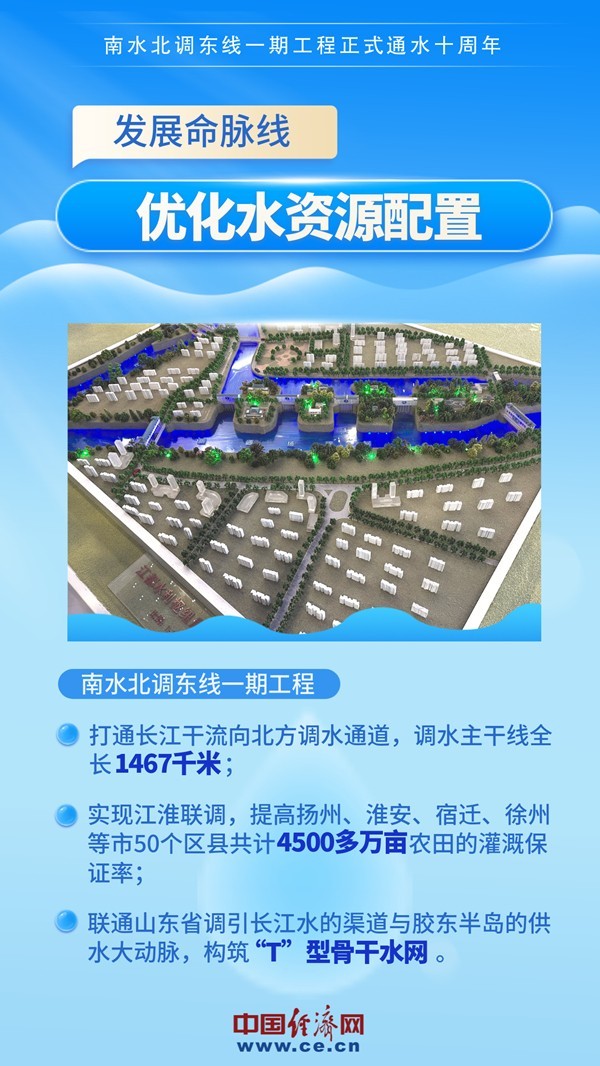 10年來,長江水、淮河水、黃河水等水系構筑起的縱橫水網(wǎng),由一渠清水串連,鋪陳在東方大地上,連接起江蘇、安徽、山東3省的23個地級市和其轄內(nèi)的101個縣(市、區(qū))用水需求,惠及沿線超6800萬人。
