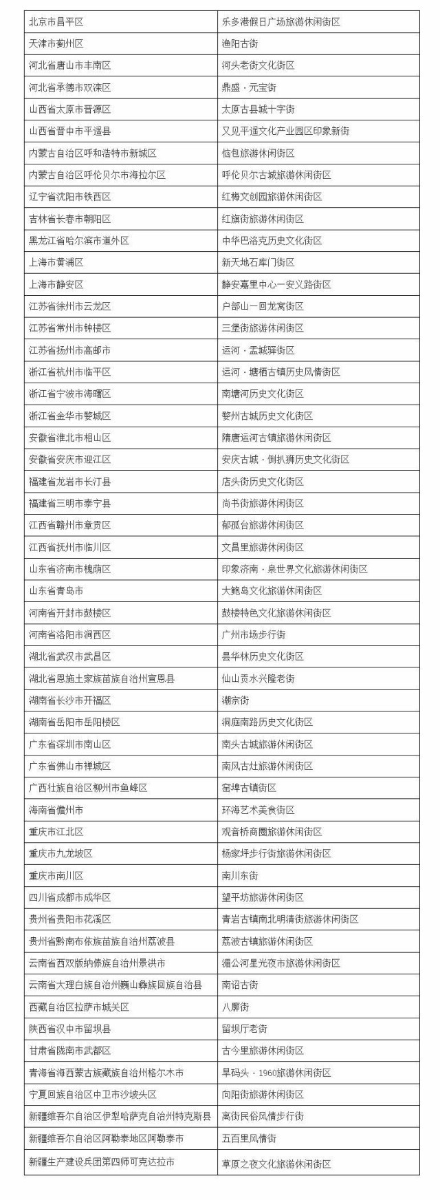 第三批國(guó)家級(jí)旅游休閑街區(qū)名單的公告
