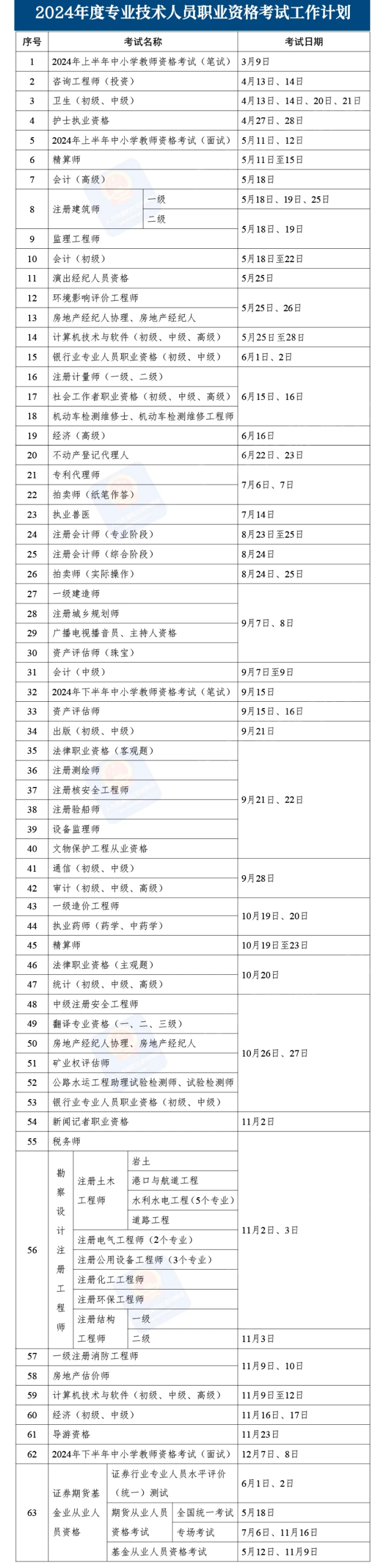 2024年專業(yè)技術(shù)人員職業(yè)資格考試計劃發(fā)布!附時間表