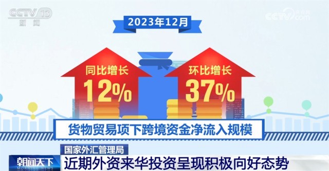國(guó)家外匯管理局?jǐn)?shù)據(jù)顯示,2023年12月,我國(guó)貨物貿(mào)易保持較高規(guī)模資金凈流入,近期外資來華投資呈現(xiàn)積極向好態(tài)勢(shì)。