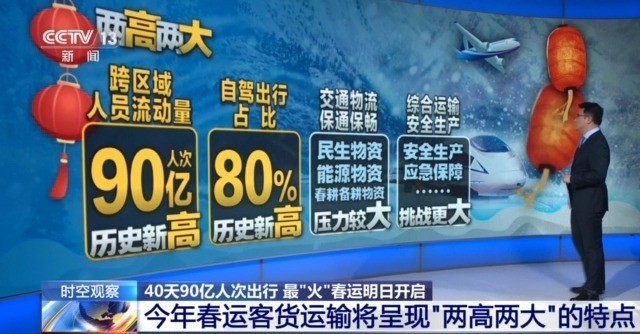 根據交通運輸部此前發(fā)布的數據,今年春運期間全國跨區(qū)域人員流動量預計將達到90億人次,創(chuàng)歷史新高。