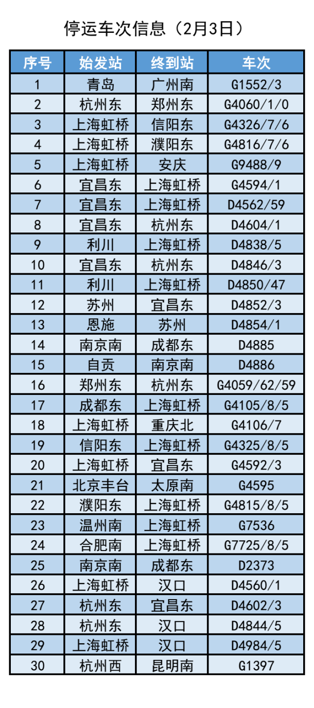 截至2月3日7時(shí)30分,計(jì)劃停運(yùn)2月3日至2月4日間39趟旅客列車。